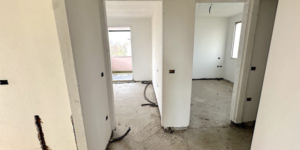 Composto da: soggiorno living con cucina a vista, disimpegno, bagno, 2 camere matrimoniali, ripostiglio e tre terrazzi.