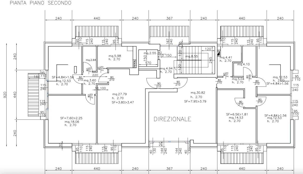 Spazi attualmente predisposti con possibilità di realizzazione uffici, ideali per studi professionali o attività direzionali. - Piano Secondo: